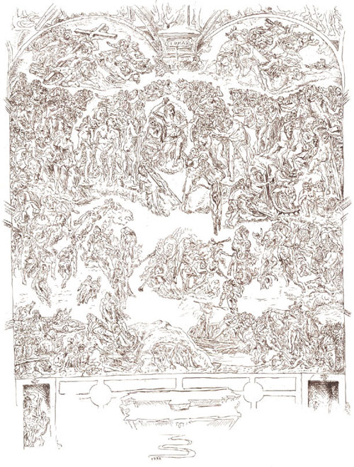 in Graphit, Farbstift, Tusche und Pastel.