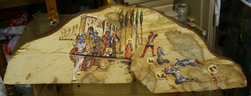 Gemalt auf einem Fällkeil.