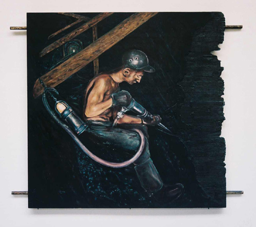 Im Flöz sitzend sollte er sich mit dem Presslufthammer in die reale Kohle hinarbeiten
