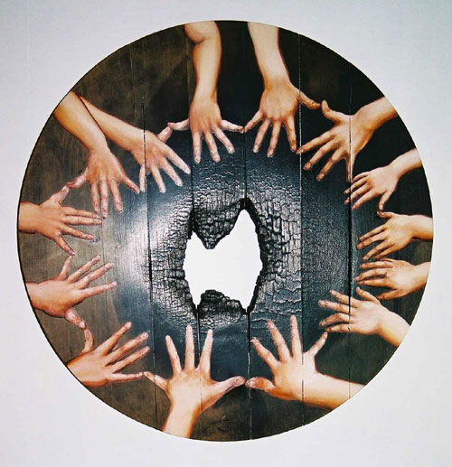 Das Holz ist dabei meist nicht nur klassischer Bildträger, sondern als Material oft direkt angesprochen.