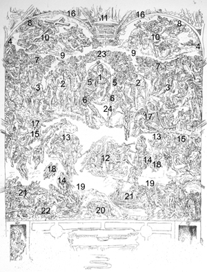 Der Sockel des Propheten Jonas bekommt dann Bedeutung als Glabella (11),