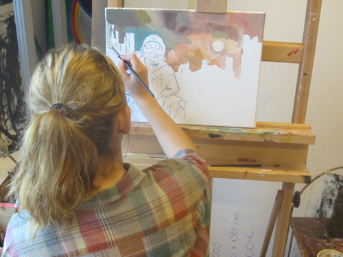 In einem sozialpädagogischen Projekt des Internationalen Bund für Sozialarbeit namens "Kunst statt Knast" malt Sven Schalenberg in Mainz mit straffälligen Jugendlichen.